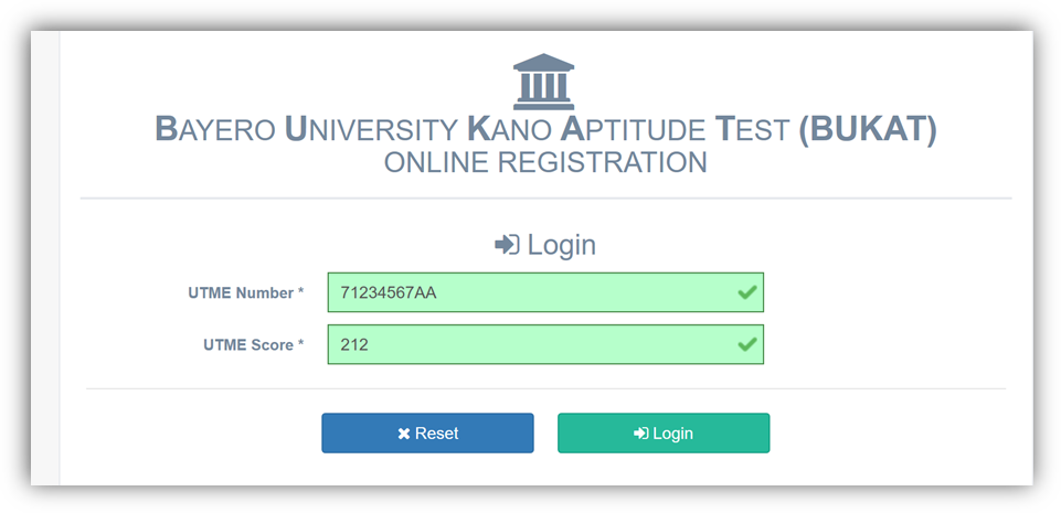 Login using your UTME Number and UTME Score.